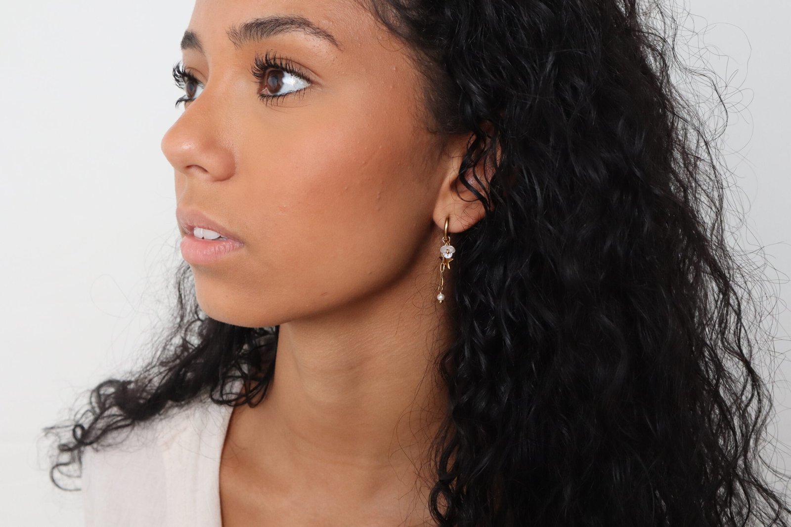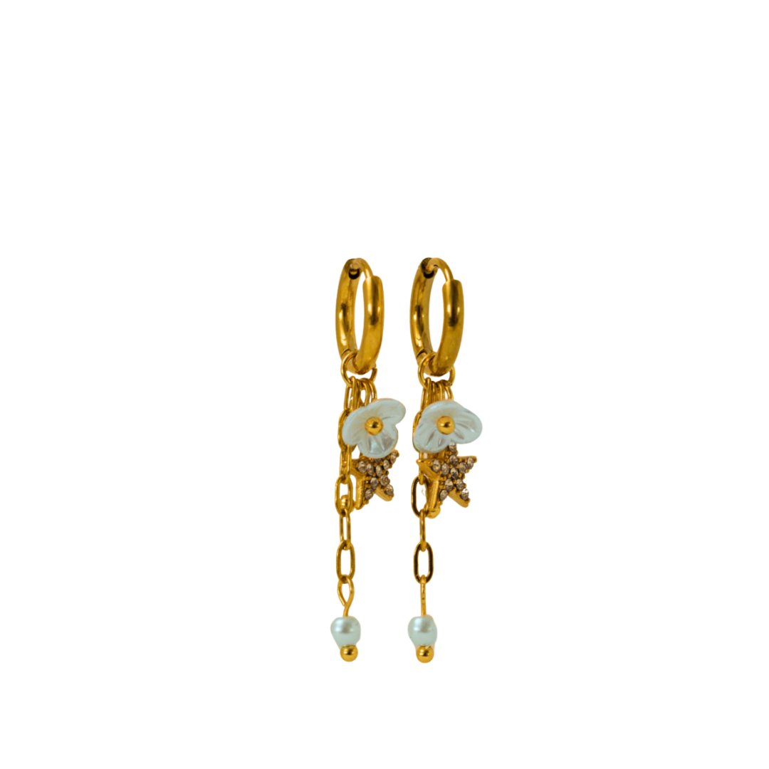 18k gullhúðað ryðfrítt stál með hvítum zirkon steinum og perlum